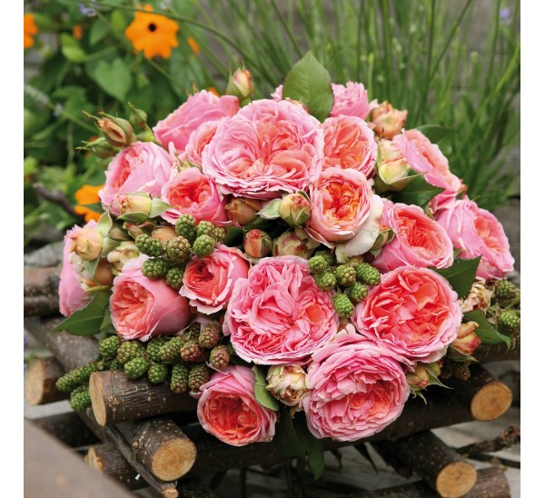 Сильнорослый шраб с темной блестящей листвой. Цветки очень душистые, густомахровые в старинном стиле. Окраска цветка изменчива, с переливами персиково-розовых оттенков, насыщенная оранжево-лососевая в центре с более светлыми внешними лепестками. Под прямыми солнечными лучами цвет может выгорать до бледно-розового. Очень обильное повторное цветение. Цветки очень хорошо стоят в срезке. Кусты мощные, высотой 80‑120 см и шириной до 100 см. Быстро разрастаются и имеют хорошо развитую корневую систему. Стебли прямостоячие ветвистые, формируют плотный, хорошо облиственный куст.