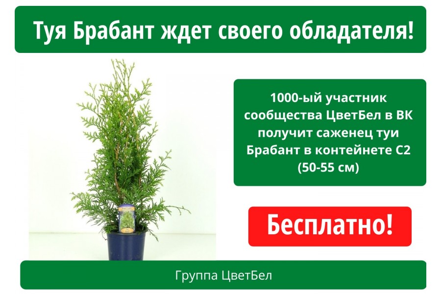 Тую в подарок получит 1000 участник нашего сообщества в ВК.